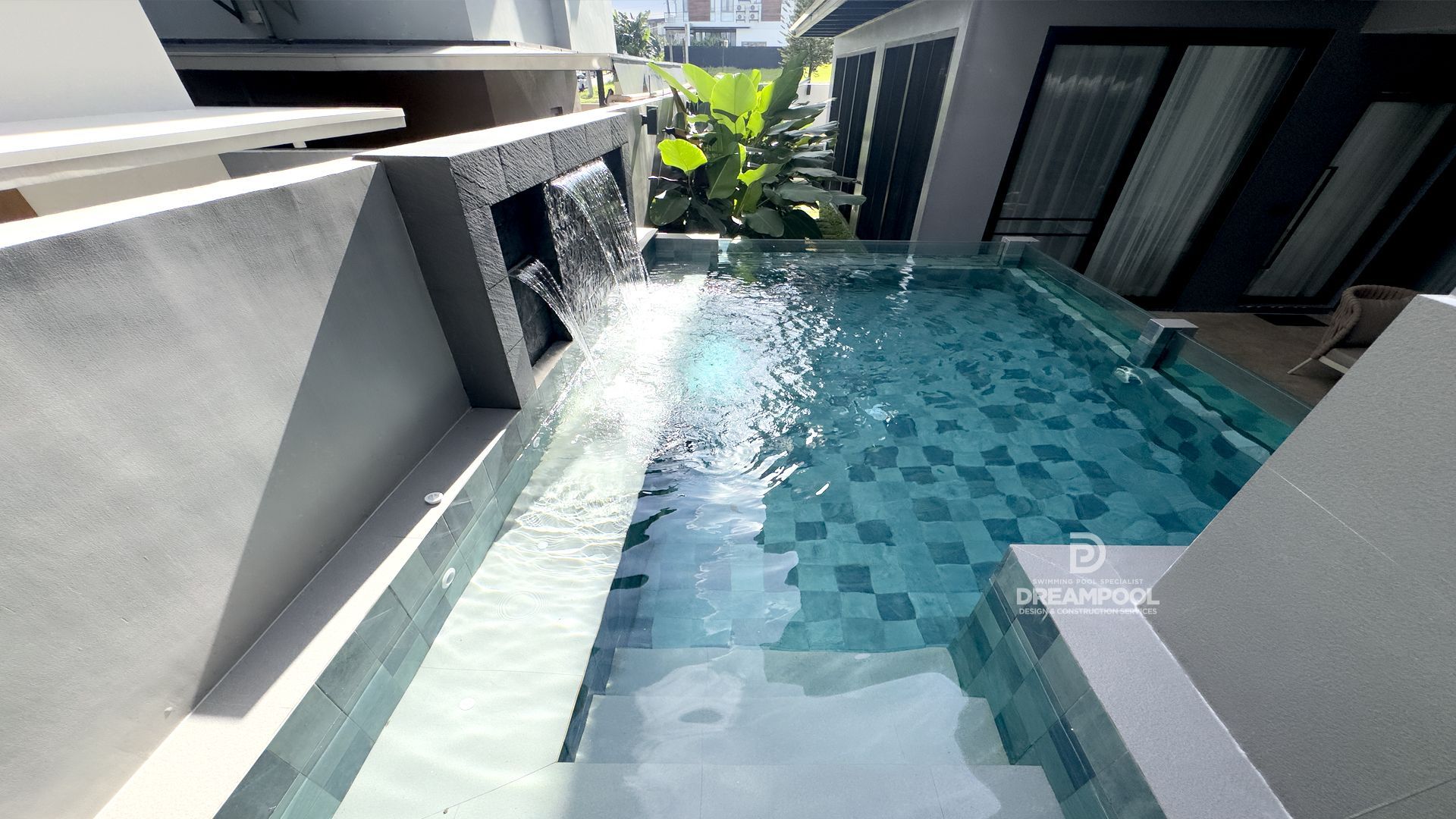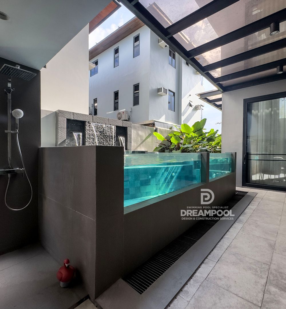 This project was built in Tivoli Royale QC. This is heated jacuzzi with tempered glass.